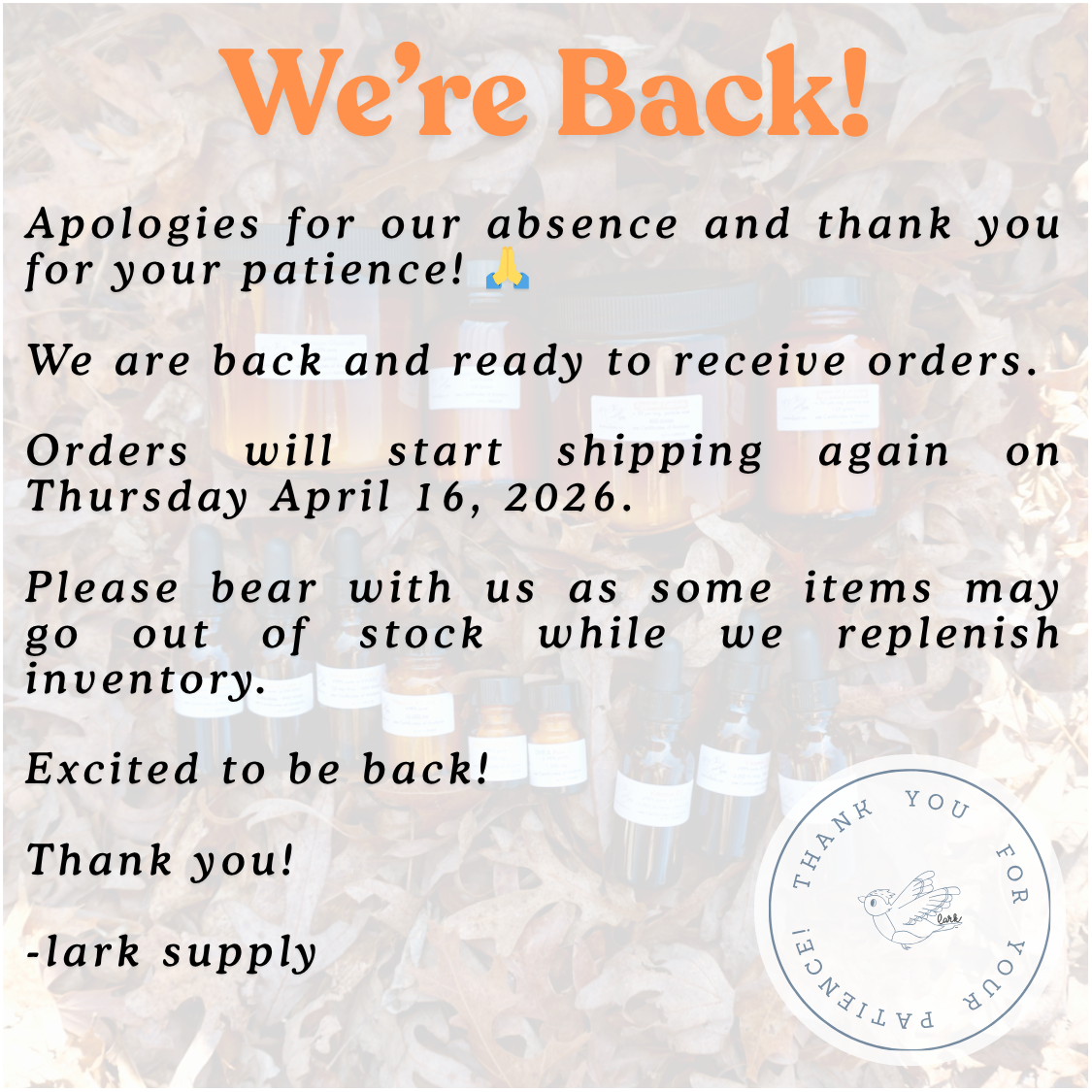 Hi there! lark supply is a microscopic family run business. We use our products daily, so we need to treat each bottle as if we we're going to use it :)